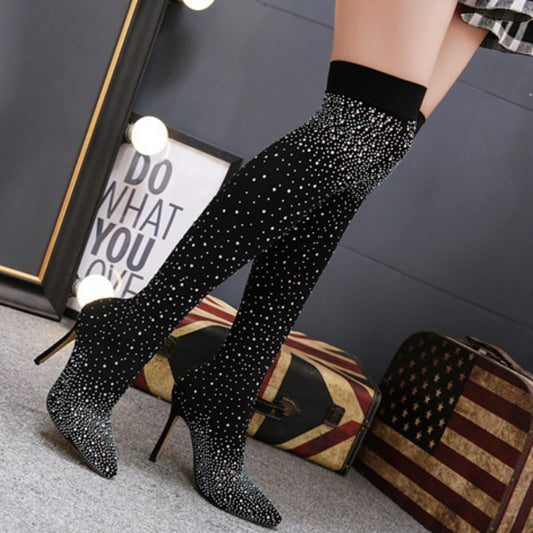 Women’s Sparkly Faux Diamonds Knee High Boots