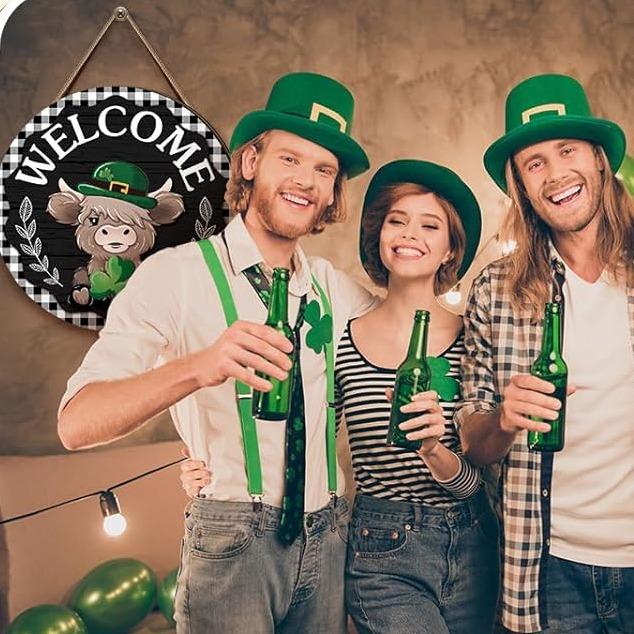 🐇 Easter Sale💥Highland Cow Sign Interchangeable Welcome Sign with Magnet Detachable Hats Cute Cattle Hanging